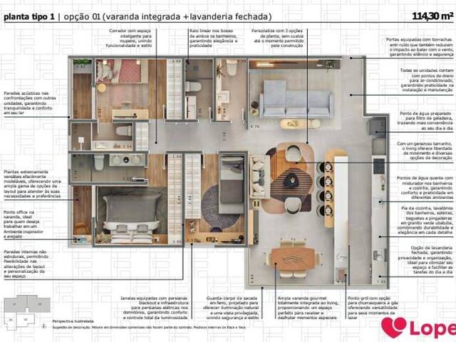 O apartamento decorado é a perfeita união de elegância e funcionalidade. A integração total entre sala de estar, varanda gourmet e cozinha cria ambientes amplos, iluminados e ventilados, ideais para momentos de convivência com família e amigos. Cada detalhe foi pensado para proporcionar conforto e bem-estar, transformando a casa em um verdadeiro refúgio.